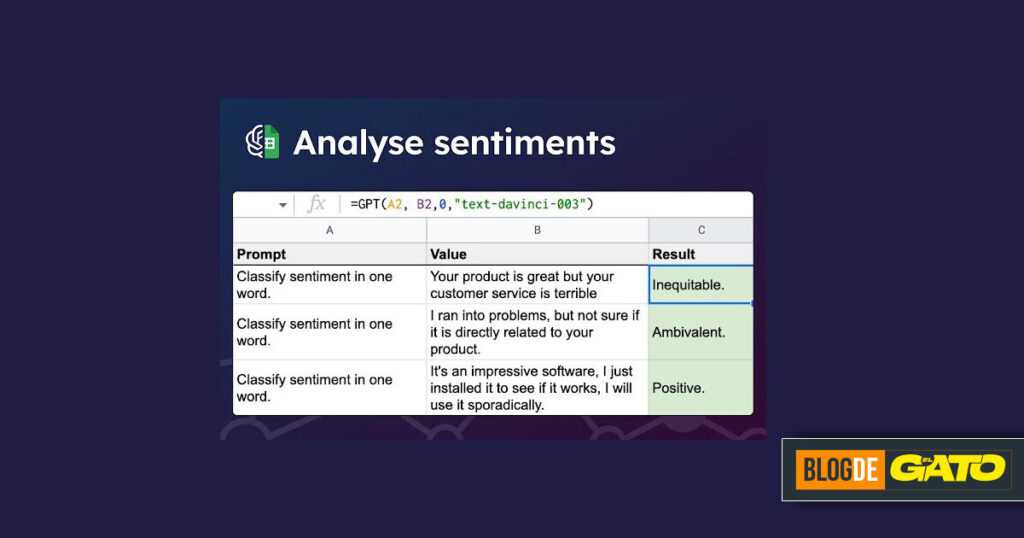 Ha sido creada por un desarrollador que dice claramente que no tiene relación con OpenAI (la firma creadora de ChatGPT) pero ha complementado la potencia de la IA de GPT-3 a Google Sheets mediante la exposición de dos sencillas funciones personalizadas: GPT para obtener el resultado en una sola celda y GPT_LIST para obtener un elemento de lista por fila.